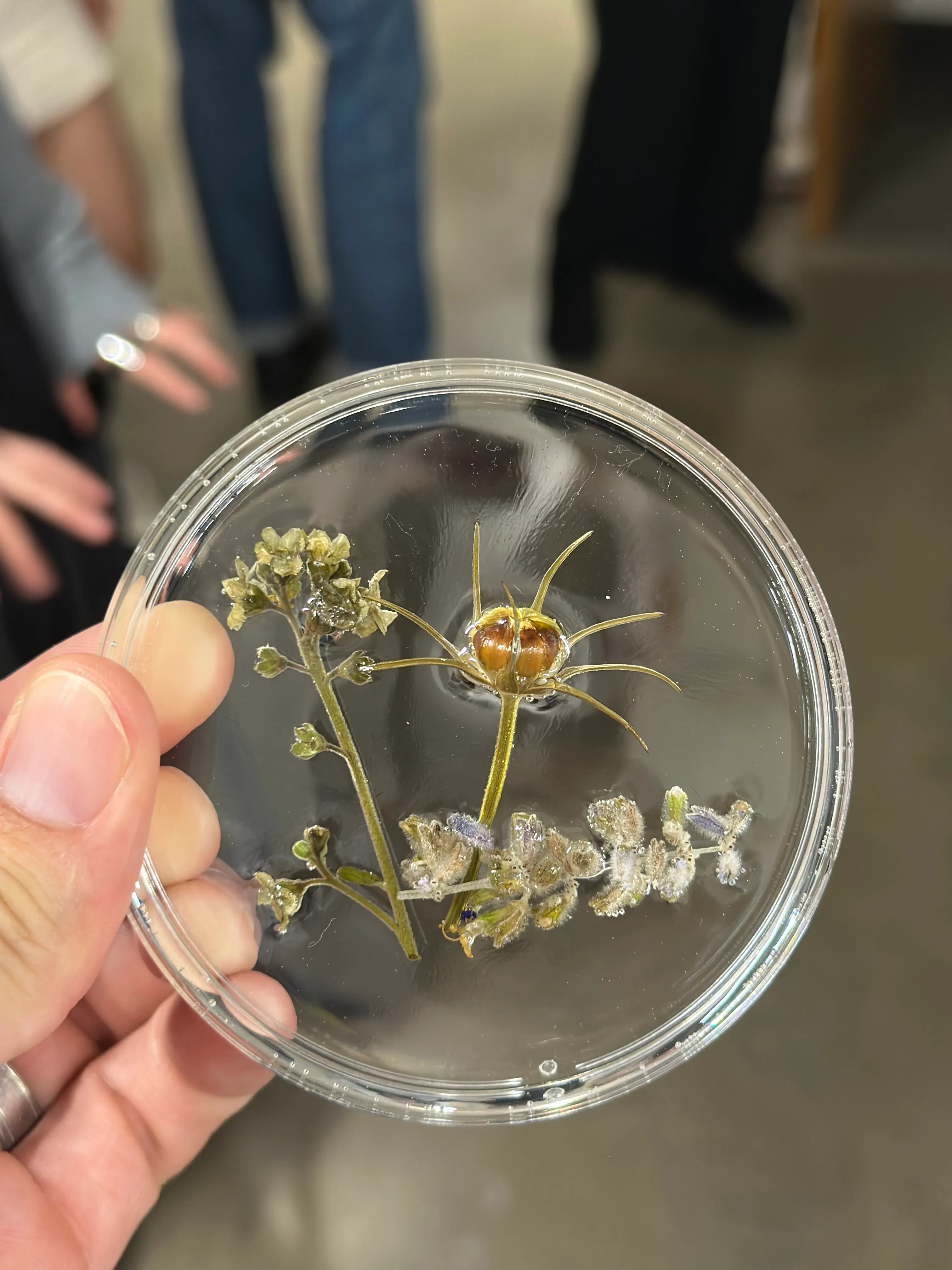 To transform the overlooked into the observed, we preserved plant fragments in clear epoxy within petri dishes, creating small windows for examining stems, seeds, and veins. Through collecting, cataloging, arranging, and casting, the specimens take on an archival quality. When grouped, the dishes form a grid that slows the viewer’s pace and elevates ordinary sidewalk finds into a shared study of urban plant life.