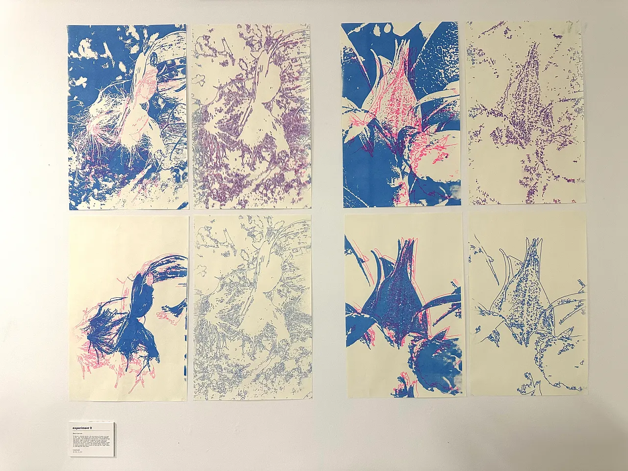 My experiment focused on capturing the finest details of each plant, documenting every lump, hair, grain, and crevice to reveal rich textures and forms. These details were traced to generate unique shapes for exhibition posters. The final compositions were produced using risograph printing, resulting in vibrant, tactile posters.